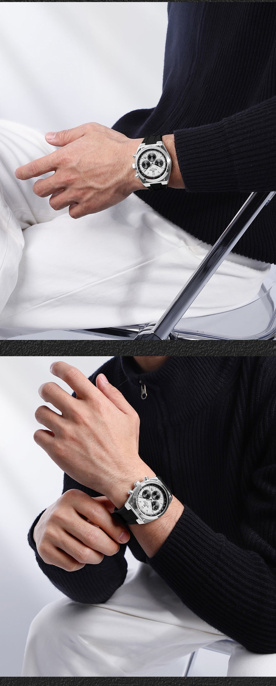 · Quartz Chronograph Movement: Ensure precise timekeeping with this reliable movement, designed for accuracy and durability.